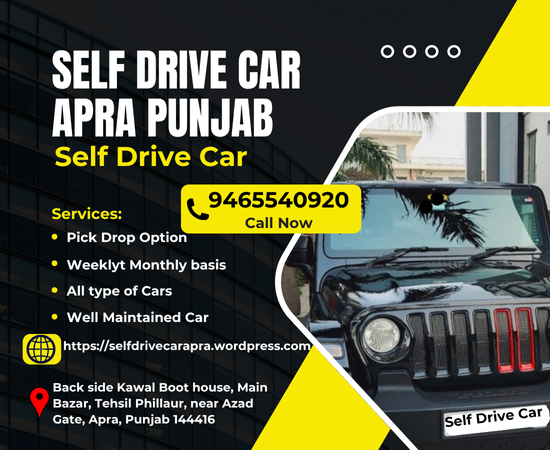 Self Drive Car Rental Apra Punjab offers self drive car on rent service in Apra, Phillaur, Nurmahal, Nakodar, Shahkot, Nawanshahr, Banga, Phagwara, Hoshiarpur, Mahilpur, Chabbewal, Tanda, Dasuya, Mukerian, Garhshankar, Jalandhar, and surrounding areas.