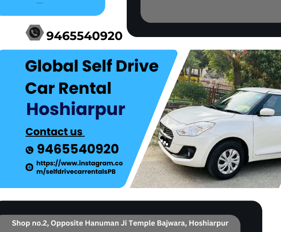 Global Car Rental Hoshiarpur offers self drive car on rent service in Hoshiarpur (Mahilpur, Tanda, Dasuya, Mukerian, Garhshankar), Jalandhar (Apra, Phillaur, Nurmahal, Nakodar, Shahkot), Gurdaspur (Batala), Nawanshahr (Banga), Phagwara, Ropar, Mohali and surrounding areas for Weekly and monthly basis on reasonable prices. We provide well maintained cars with doorstep delivery across Punjab. From sedans to SUVs, we have the perfect ride for your Holidays.